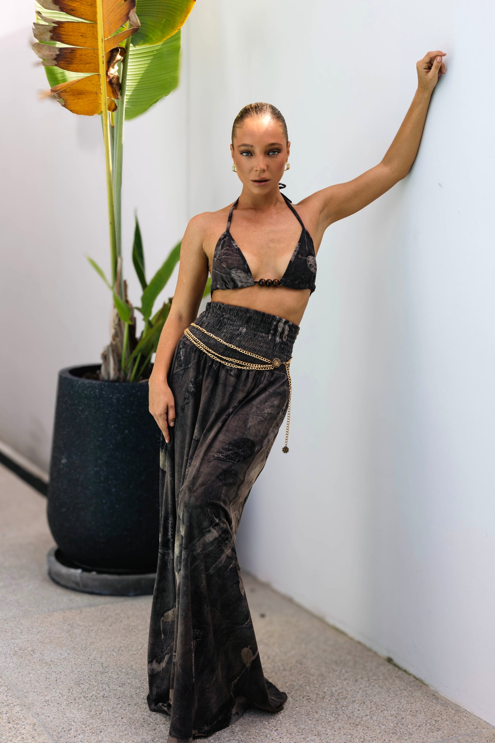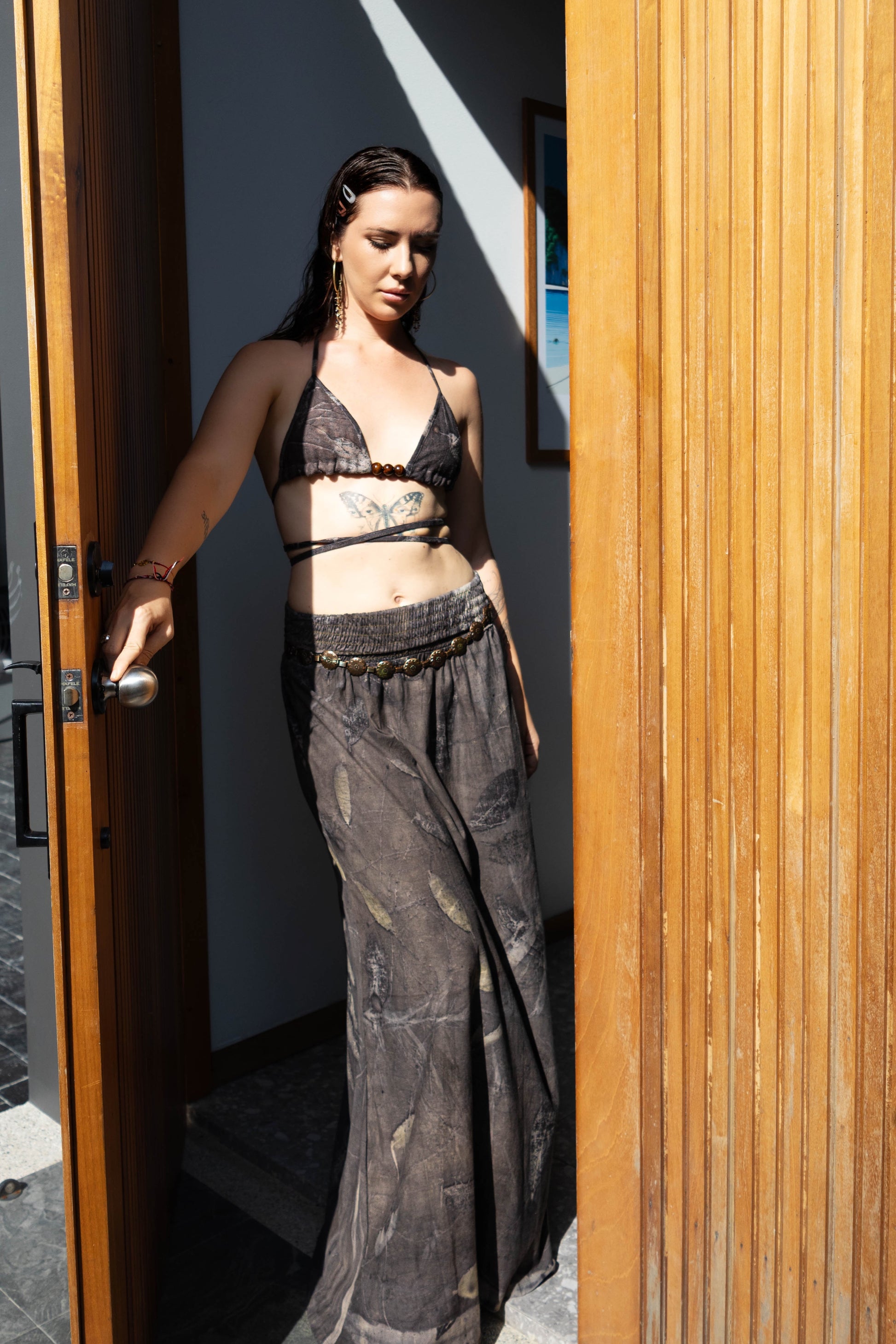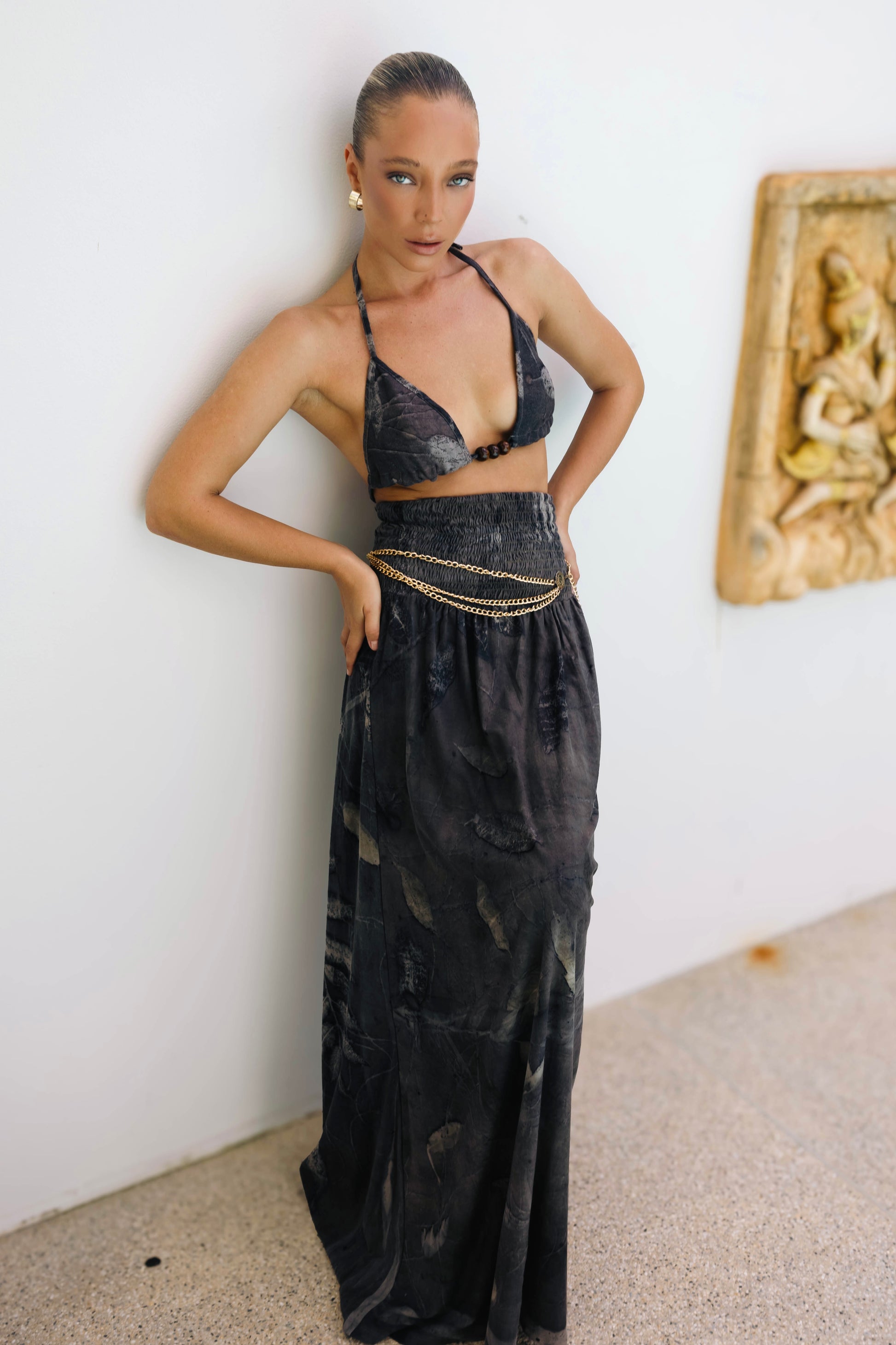 The Isha skirt is a versatile statement piece crafted from soft organic cotton and hand eco-printed with real leaves, each with a unique pattern.