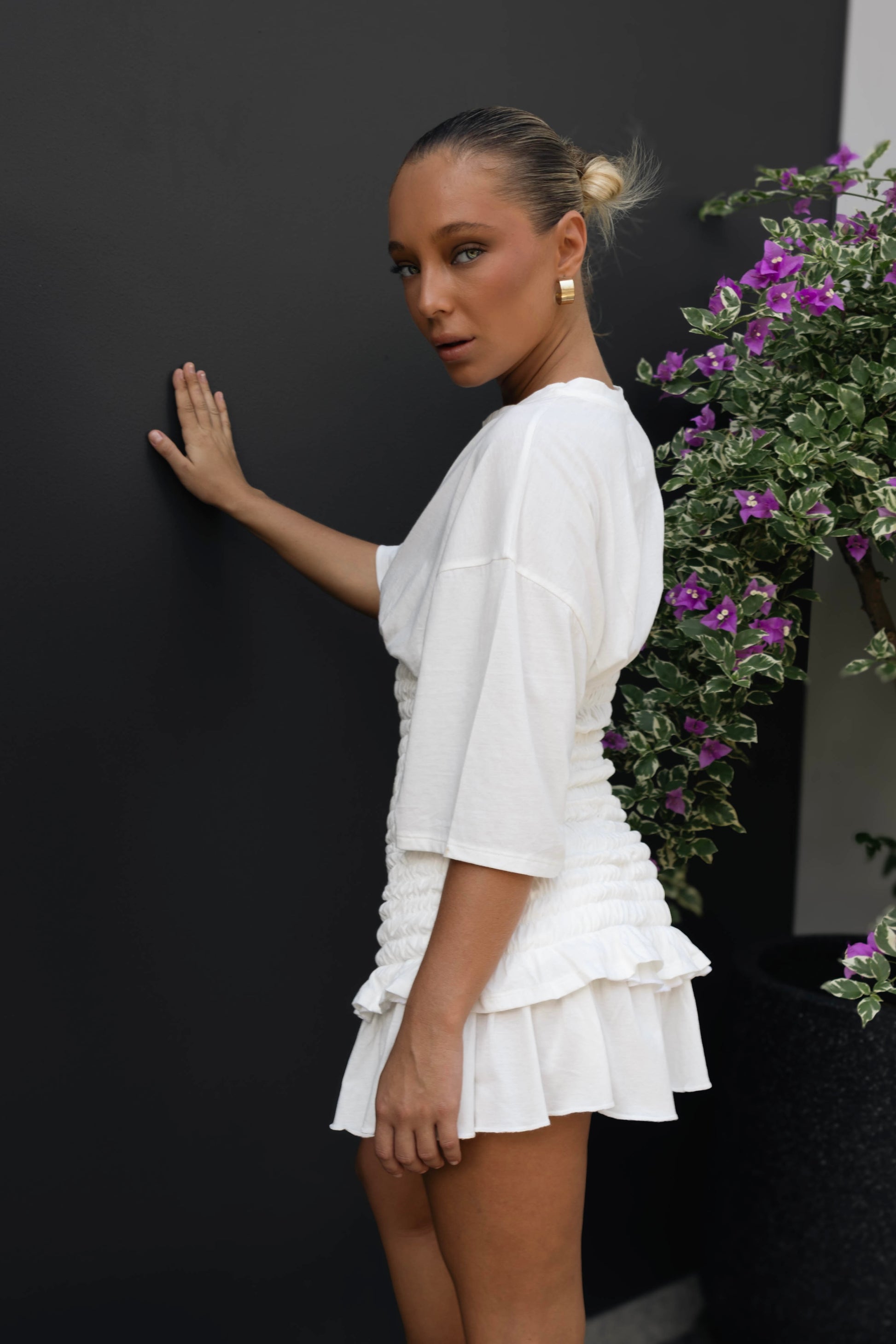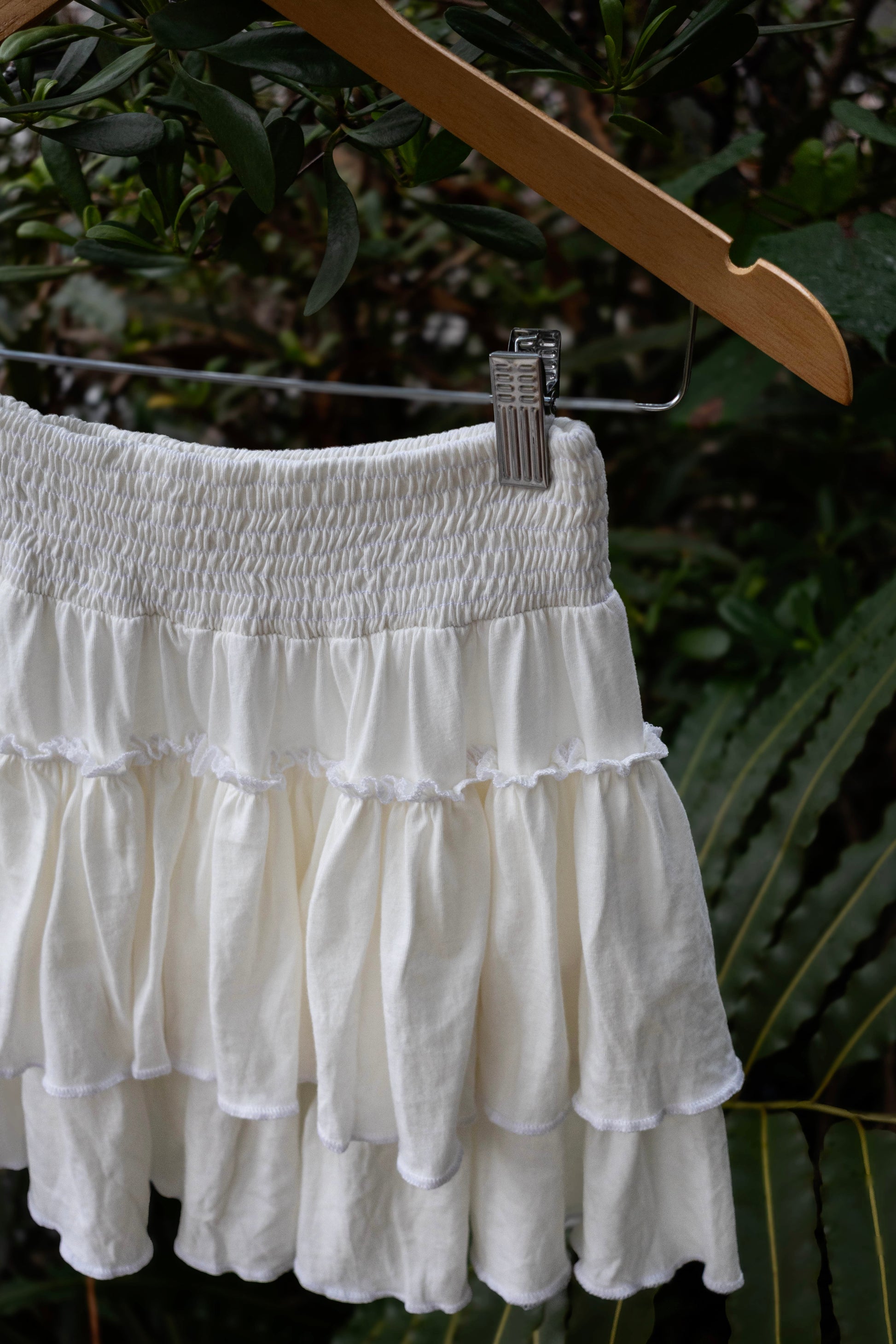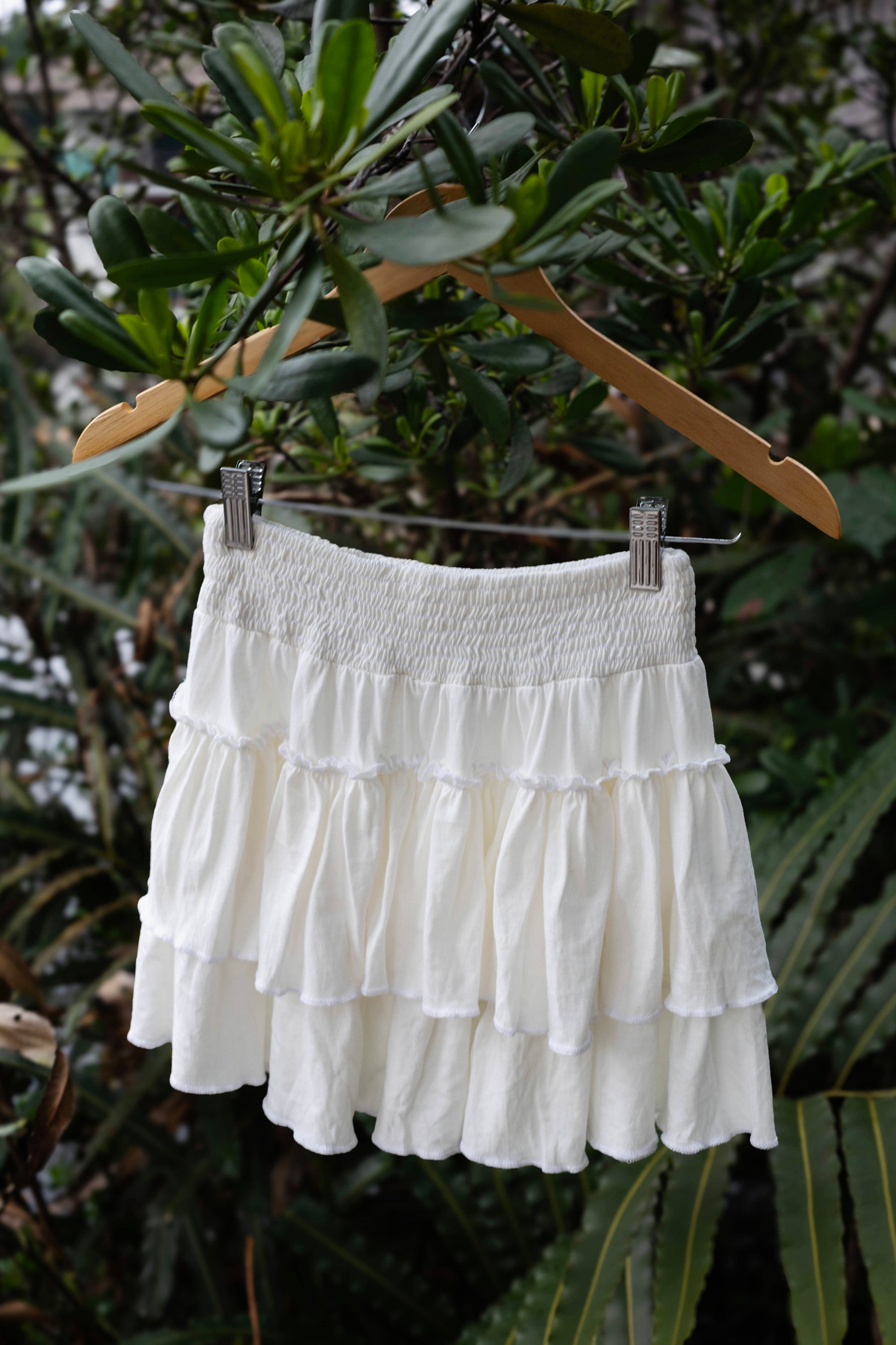 The Lila Mini Skirt in crisp white is a wardrobe staple for every season. Made from 100% organic cotton, its clean, undyed finish feels fresh and timeless. Perfect for dressing up with the matching Nara Top or Elira Top in white.