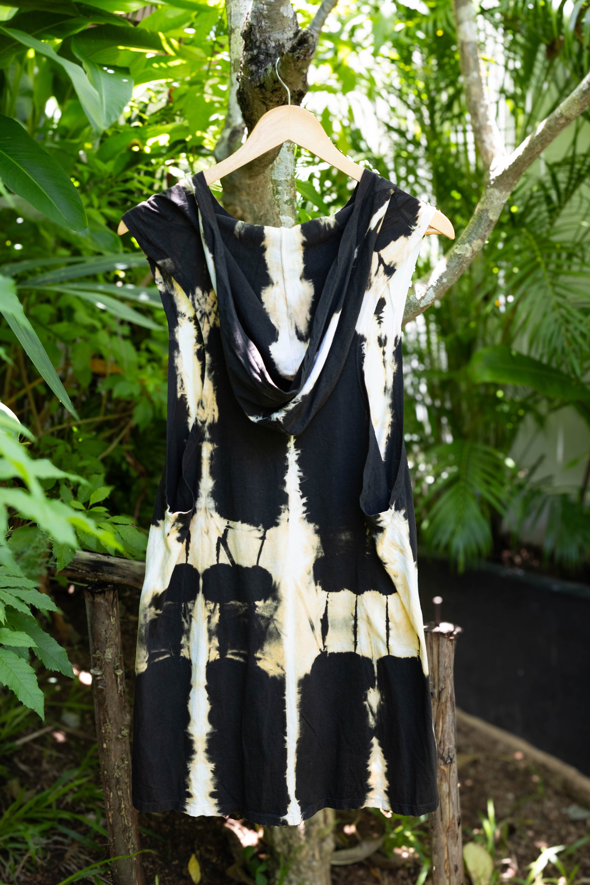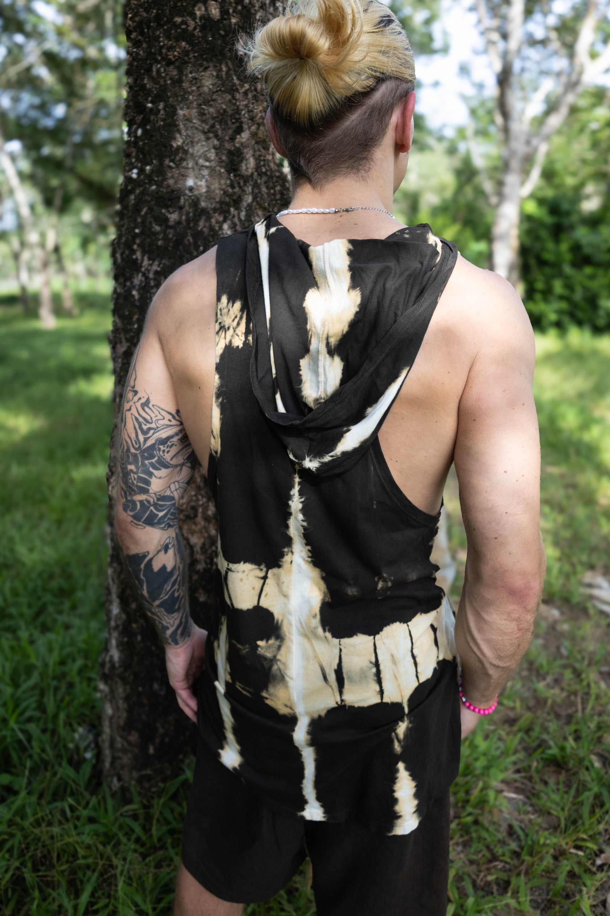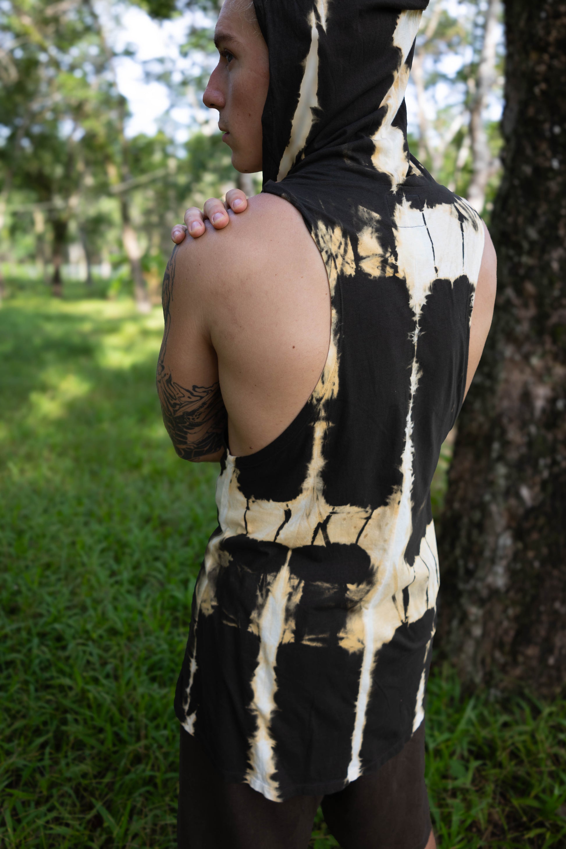 The Nomad Hood Tank is crafted from 100% GOTS-certified organic cotton and naturally plant-dyed into bold black and golden tones. It carries both strength and intention.